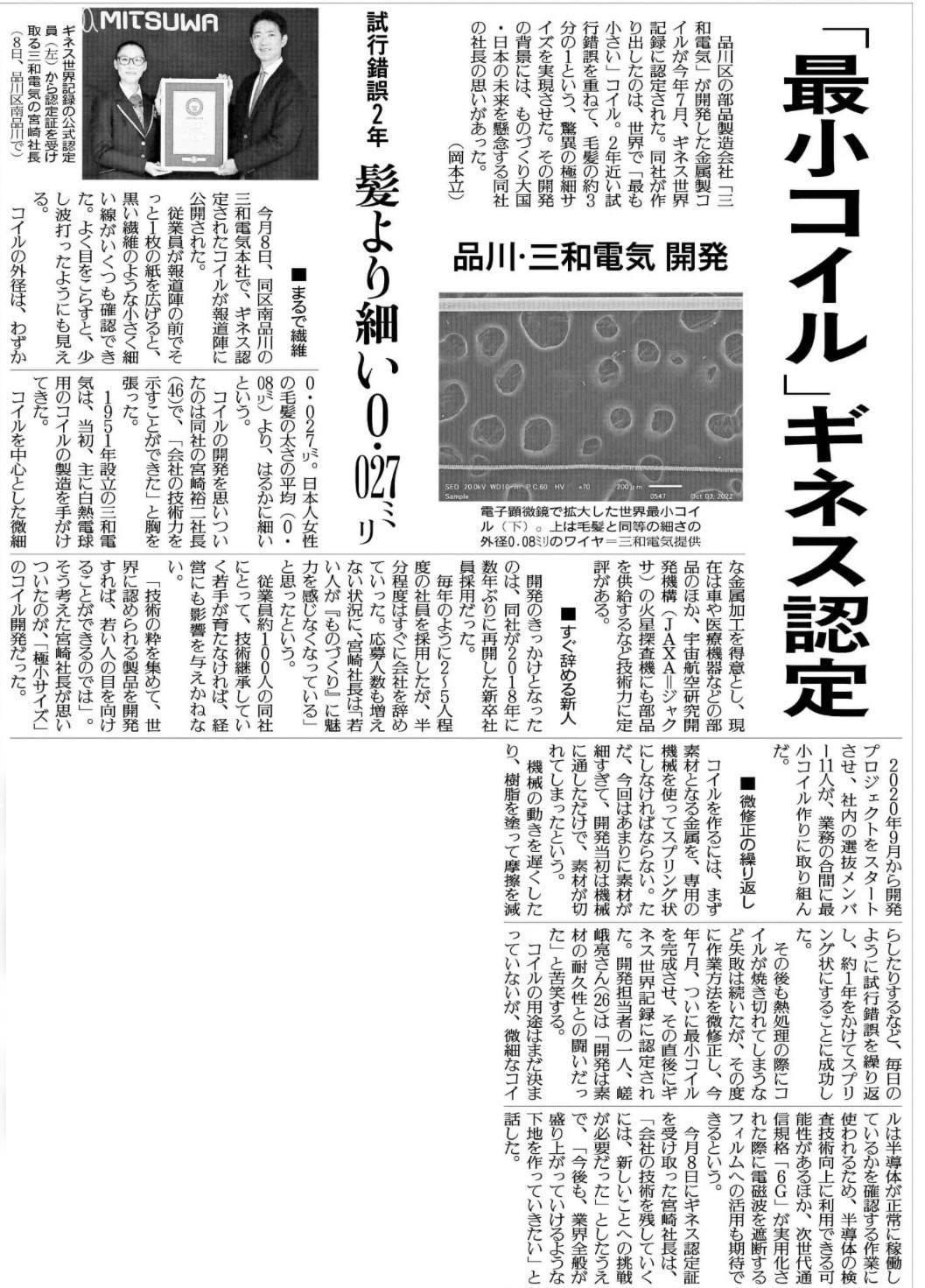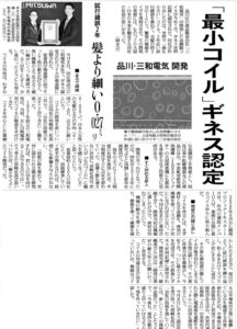 先日の「マイクロコイル開発発表及びギネス世界記録公式認定証贈呈式」について、 全国紙として有名な「読売新聞」に取り上げていただきました! ↓実際の記事(読売新聞社/2022年12月13日/朝刊)