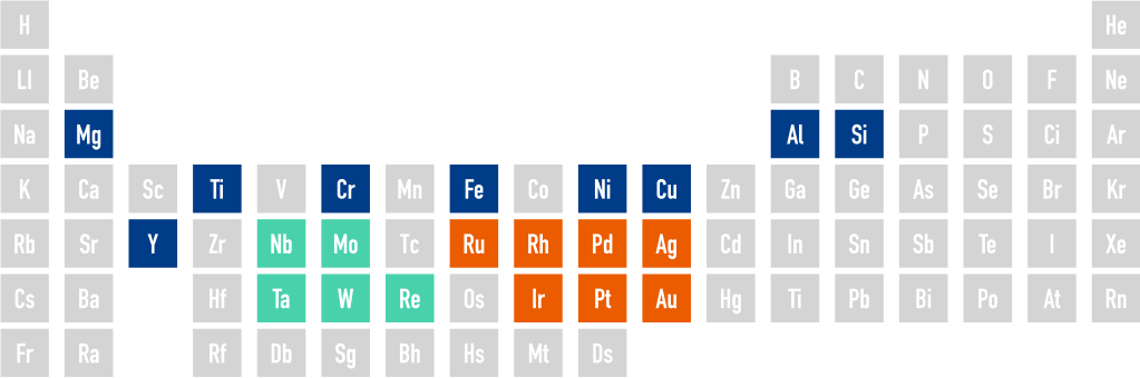 タングステンモリブテン、ニオブ等のレアメタルと呼ばれ高融点材料、ならびに、金や白金等のプレシャスメタルと呼ばれる