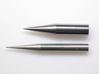針加工技術を駆使した汎用性のある尖頭加工。 精密研削・研磨加工により、棒状の材料の先端をテーパー加工致します。 電極用部品、ニードル型プローブ(ワイヤープローブ)、イオナイザー用プローブ等、幅広い用途に使用されています。